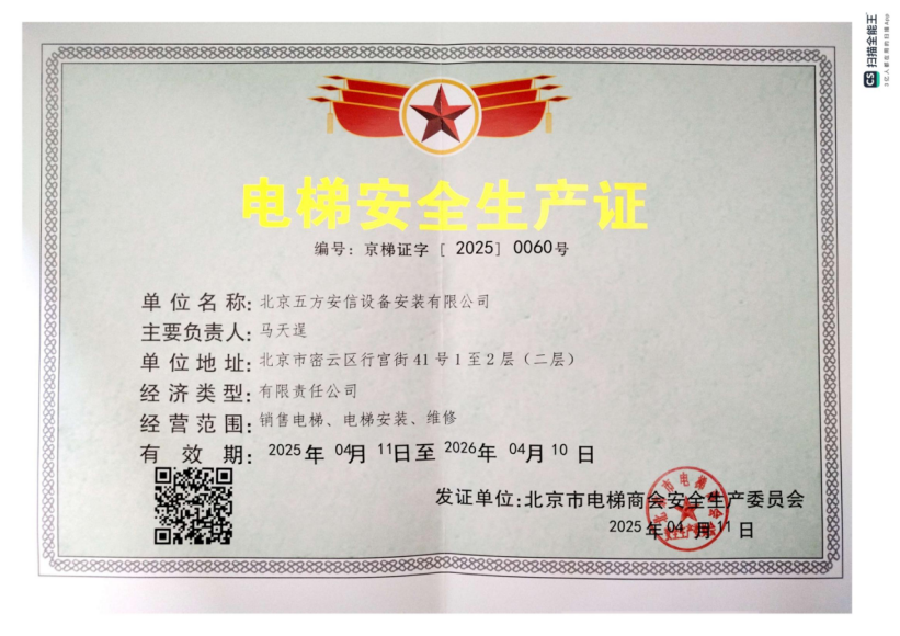 作為電梯行業(yè)的專業(yè)服務(wù)商,我司始終將安全生產(chǎn)視為企業(yè)發(fā)展的生命線。此次獲頒"電梯安全生產(chǎn)證",是對我司在電梯安裝、維保、檢測等全流程安全管理體系的權(quán)威認(rèn)證。在日常運(yùn)營中,公司嚴(yán)格執(zhí)行國家特種設(shè)備安全法規(guī),建立完善的安全責(zé)任制度,定期開展安全培訓(xùn)與應(yīng)急演練,確保每一臺電梯的安全運(yùn)行,為千家萬戶的乘梯安全保駕護(hù)航。